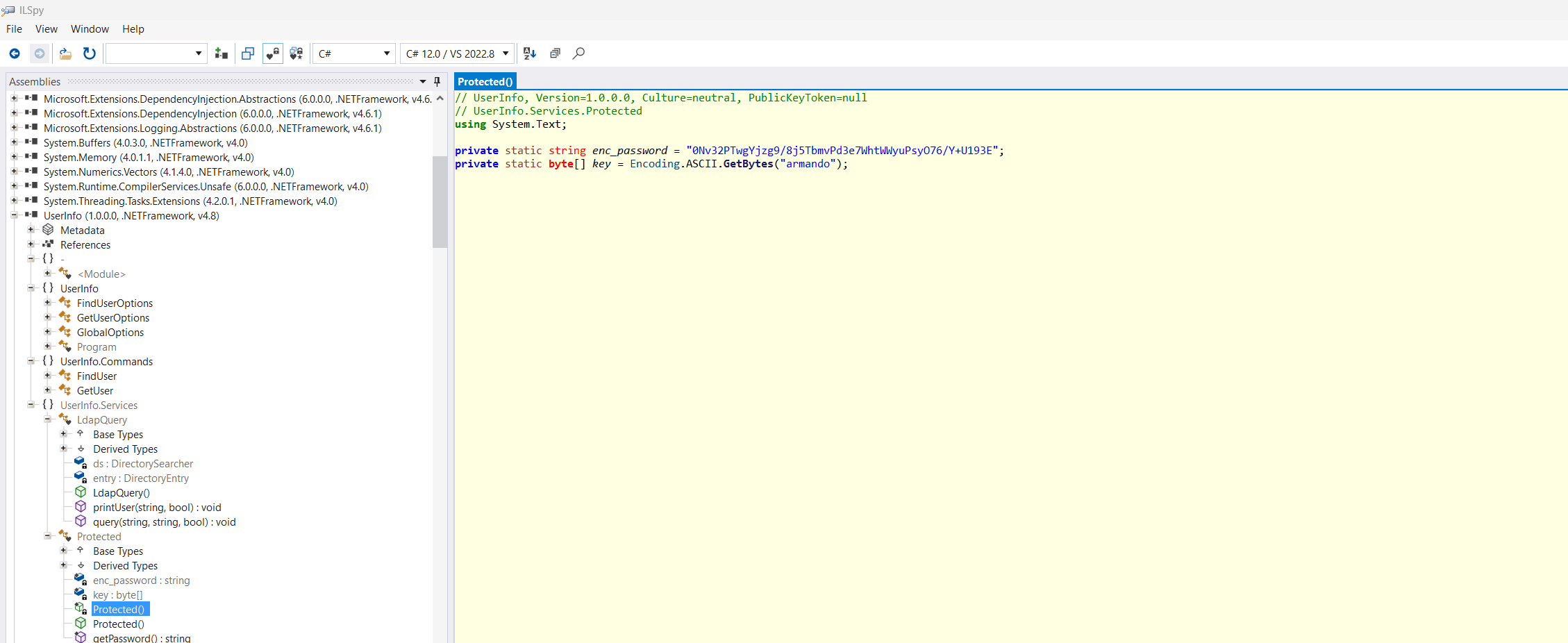 Since this is a .NET binary it can be disassembled by using ilspy. Here we can find three things:
