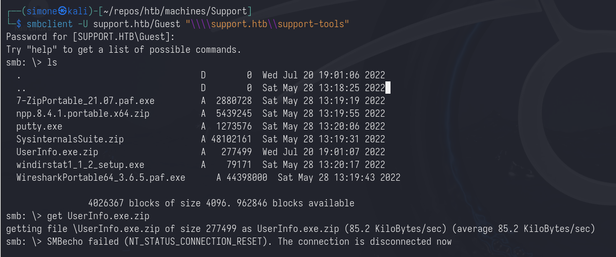 | smbclient -U support.htb/Guest "\\\\support.htb\\support-tools"