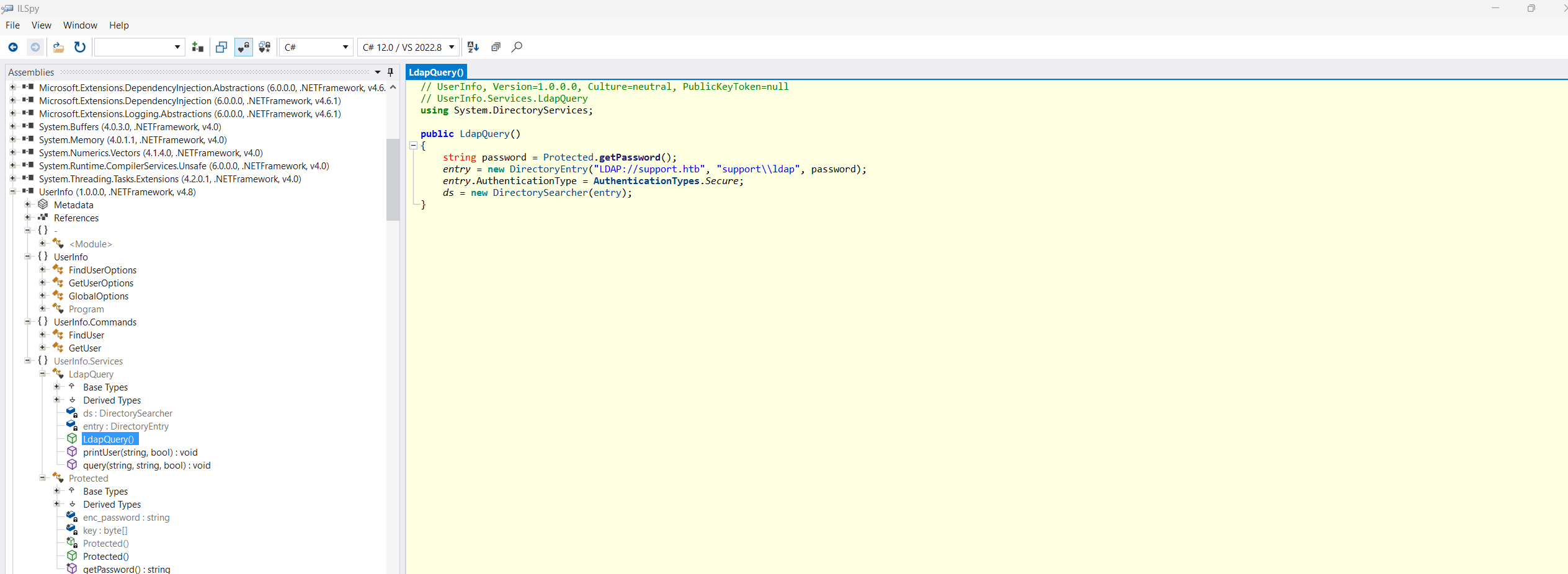 | ldapsearch -x -H ldap://support.htb -D 'ldap@support.htb' -w 'nvEfEK16^1aM4$e7AclUf8x$tRWxPWO1%lmz' -b "dc=support,dc=htb" "(objectClass=person)"