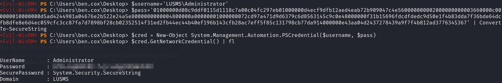 The user ben.cox is vulnerable and the retrived hash can also be cracked. We can now login inside LusMS using evil-winrm.