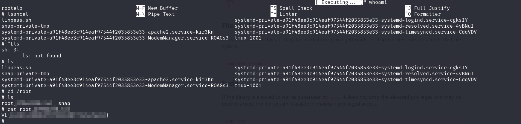 We can break out of the nano editor spawning a shell as root using: