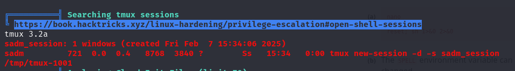 Running linpeas reveals a tmux session, we can attach to it using